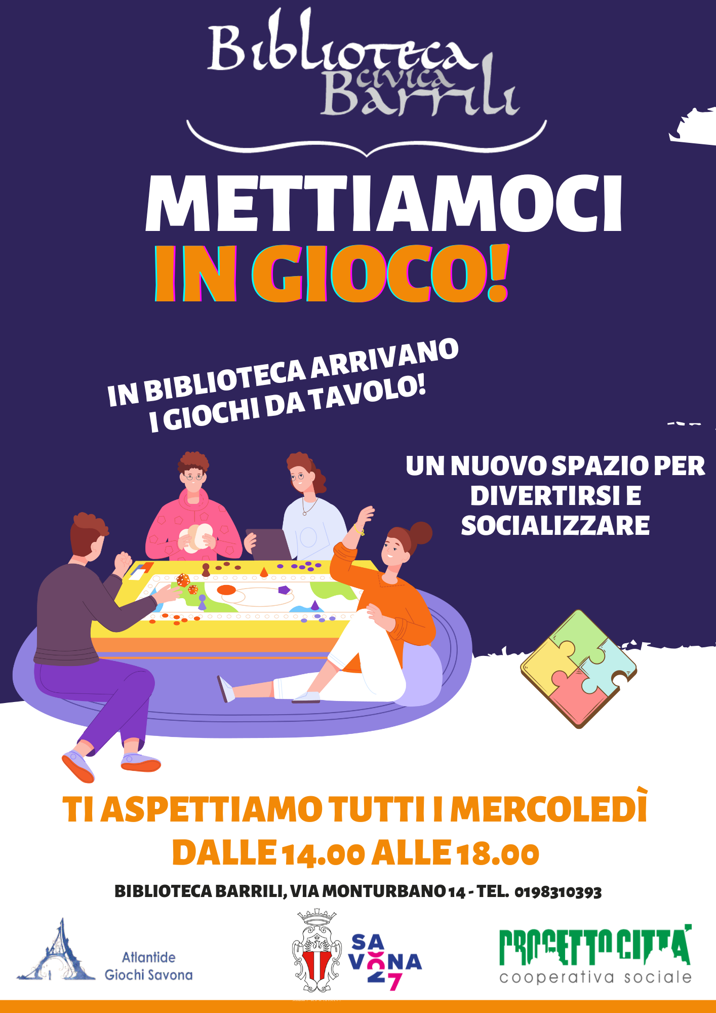 La Biblioteca Barrili ha creato al suo interno, con il supporto di Atlantide Giochi Savona, Progetto Città e Fondazione Compagnia di San Paolo, uno spazio dedicato al gioco da tavola dove incontrarsi e stare insieme.