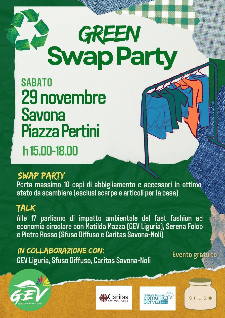 Green Swap Party, porta massimo 10 capi di abbigliamento e accessori in ottimo stato da scambiare (esclusi scarpe e articoli per la casa)